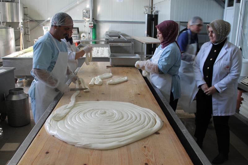 Süt ve süt ürünleri işletmesinde üretilen yöresel ürünleri tanıtan işletme sahibi Ahmet Özer Topçu il müdürü Uzun'a işletmenin günlük 6 ton olmak üzere yıllık 1.870 ton süt işleme kapasitesine sahip olduğunu, işlenen bu süt ile kahvaltılık tereyağı, kaşar, çeçil, abaza, kolot, çörekotlu, örgü, kekikli, lor, çerkez, sepet, dil peynir çeşitlerini elde ederek 500 gram ve 1 kilogram paketler halinde müşterinin beğenisine sunduklarını anlattı.