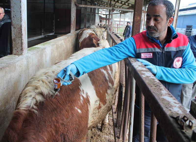 büyükbaş hayvana şap aşısı uygulanmıştır.